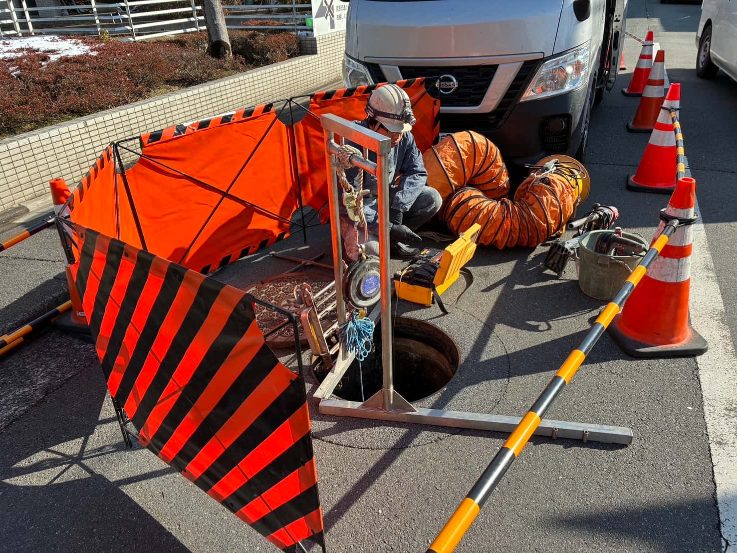 酸素欠乏・硫化水素濃度測定による環境チェック、